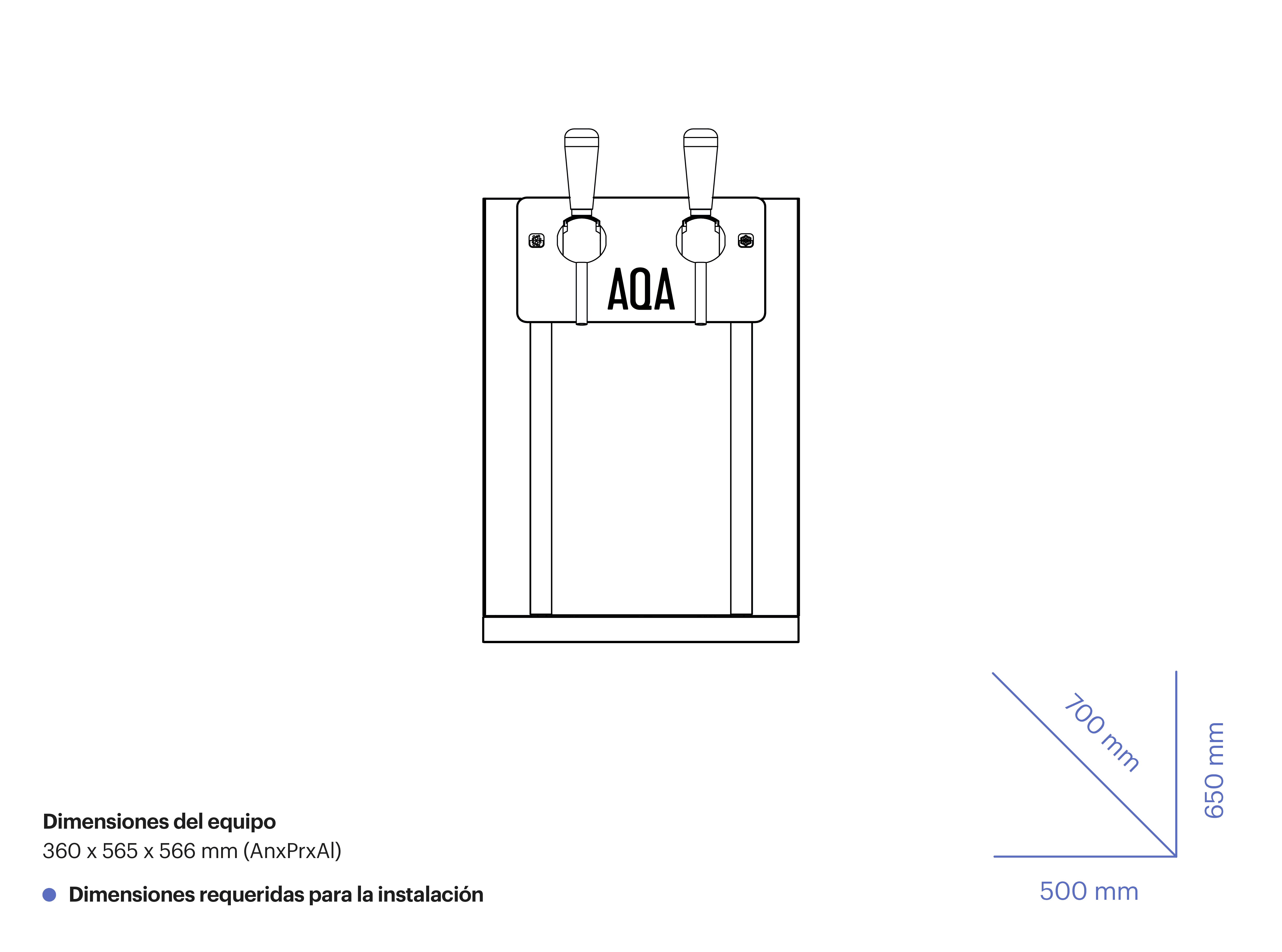 Con un rendimiento de 160 botellas de 500 ml por hora a 4°C. Sus modos de agua son fría y con gas.