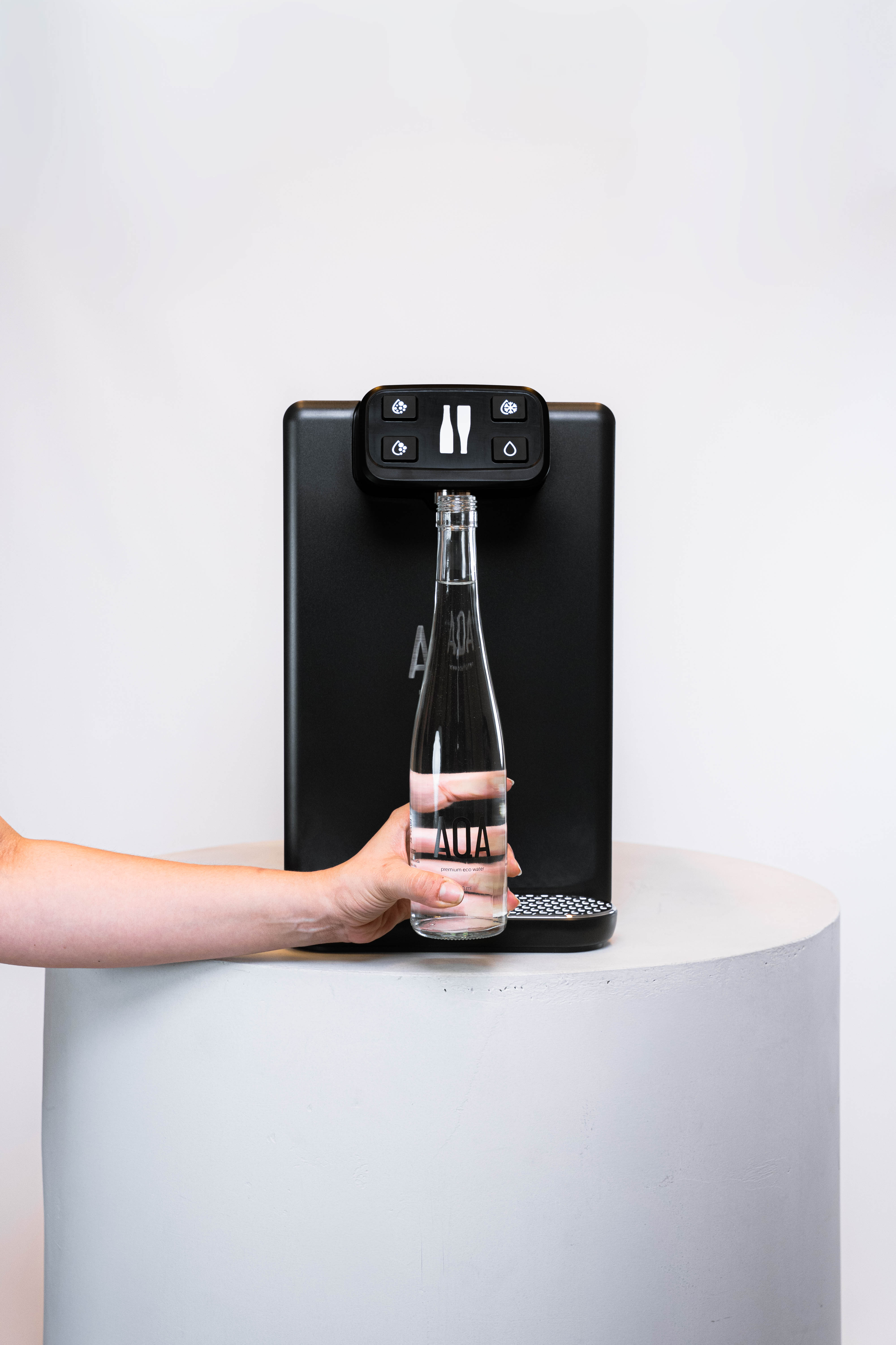 Con un rendimiento de 60 botellas de 500 ml por hora a 4°C. Sus modos de agua son natural, fría y con gas.