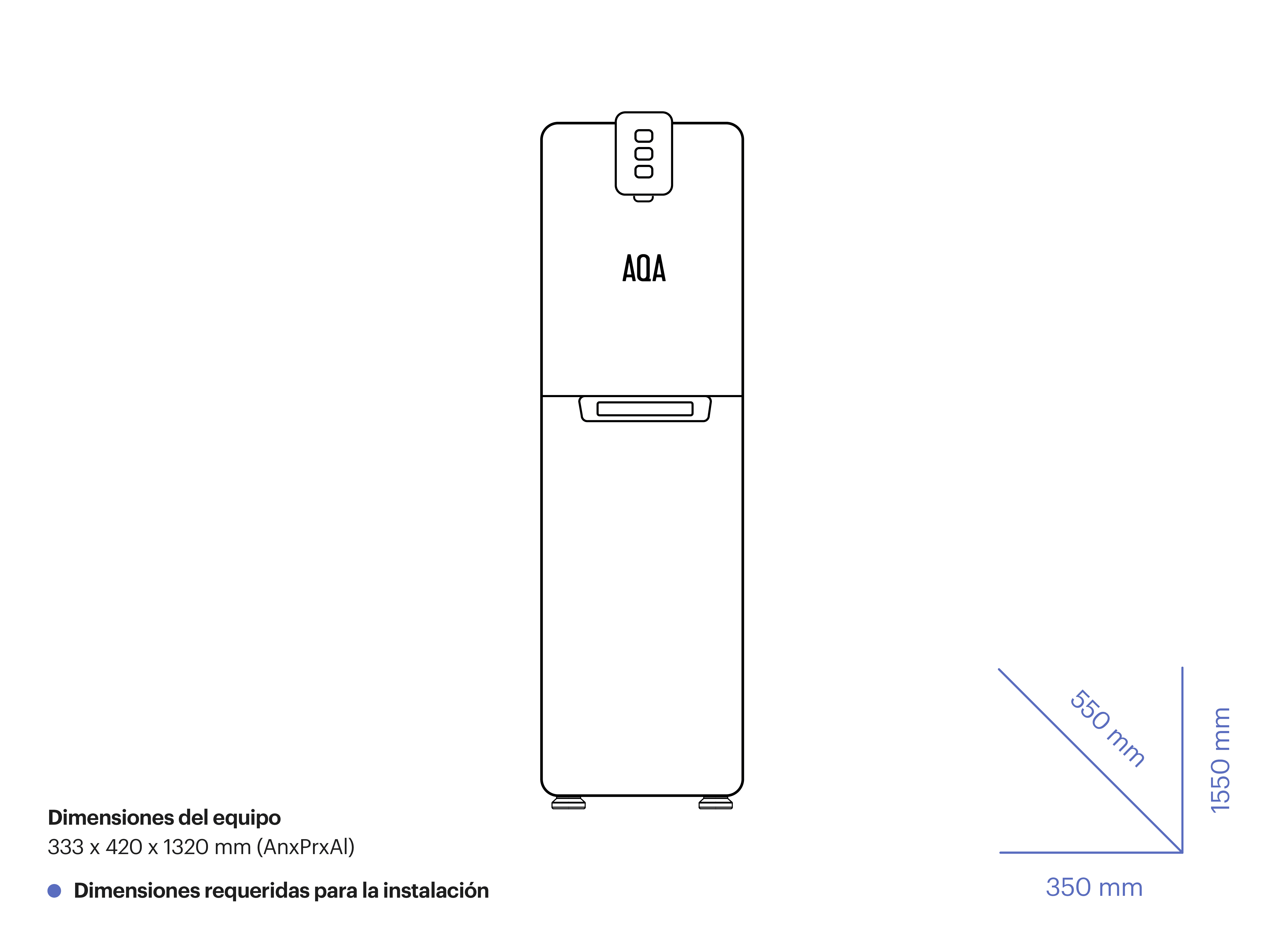 Con una capacidad de abastecer a 60 usuarios por hora a 4°C. Sus modos de agua son fría, caliente y con gas.